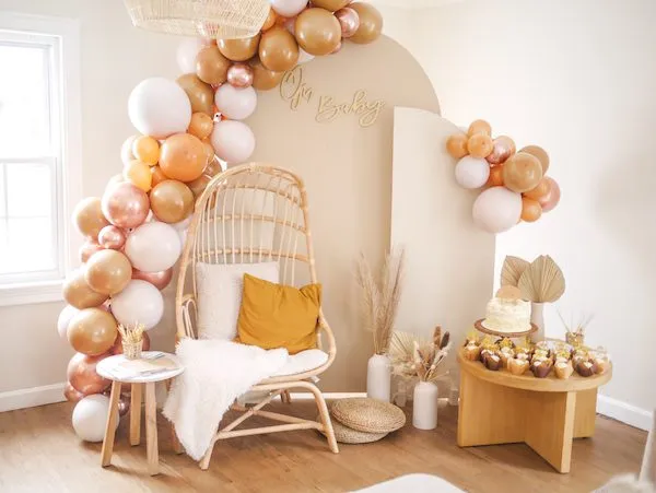 140 pcs total are 18〃Pale Pink Balloons, Lilac Mauve Metallic Balloons; 12〃Rose Gold Confetti Balloons, Metallic Lilac Balloons; 10〃Baby Pink and Pearl White Balloons; 5〃Metallic Lilac Balloons, Baby Pink Balloons. 12 pcs Butterfly Stickers. 4 Pcs .