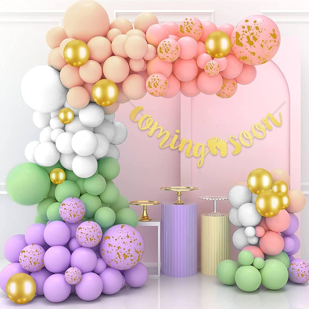 Baby Shower Decorations for Girl 140 Pcs Pink Balloon Garland with Butterfly Stickers 18 In 12 In 10 In 5 In Lilac Purple Chrome Rose Gold Confetti Balloon